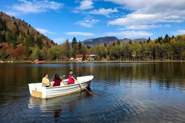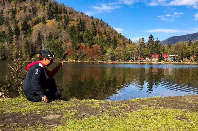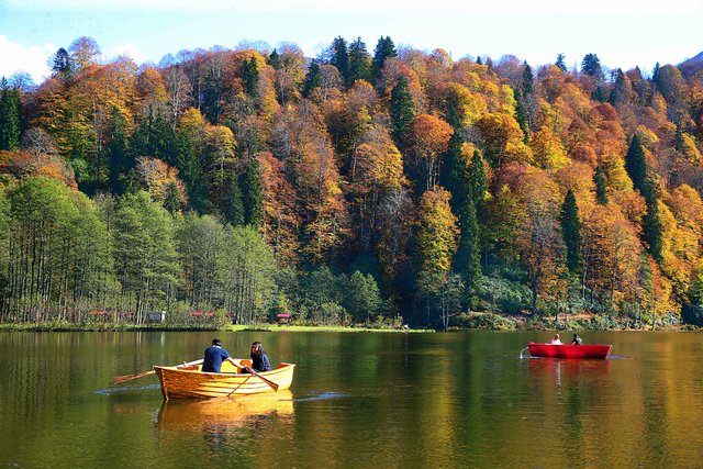 Doğası ve sonbahardaki renk cümbüşüyle görenleri büyüleyen Karagöl, sıcak ve açık havayı fırsat bilen ziyaretçilerini sonbaharda da ağırlamaya başladı.