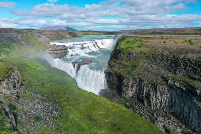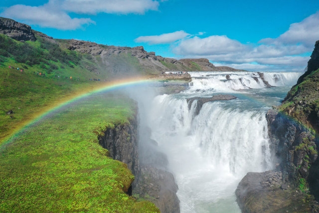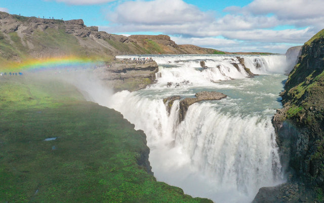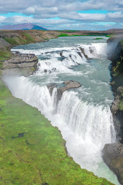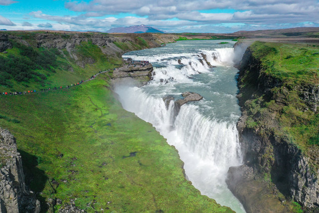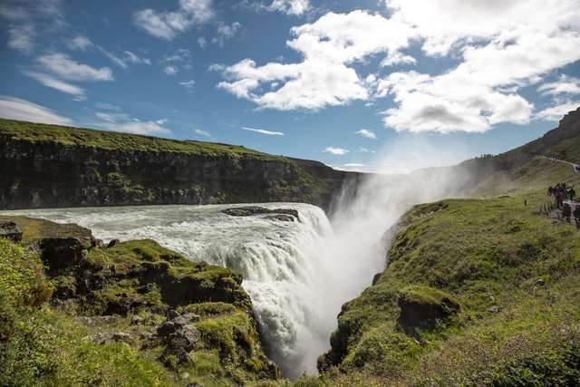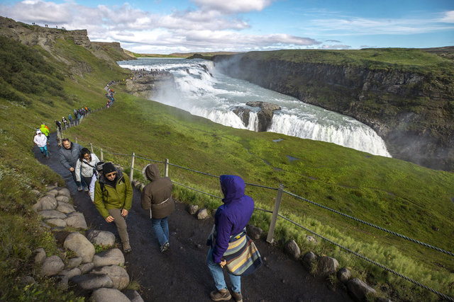 Başkent Reykjavik'e 116 kilometre uzaklıkta bulunan şelale, görkemiyle her yıl milyonlarca turistin ziyaretine uğruyor.