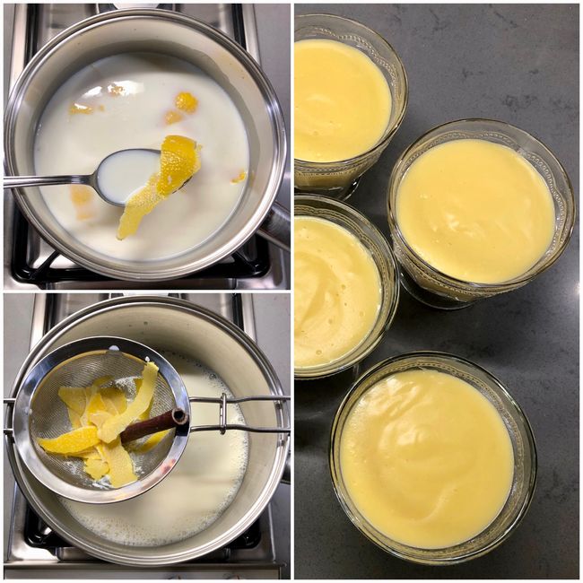• Sütü tencereye alın, limon kabukları, tarçın ve tuzu ilave edip kaynama noktasına gelene kadar ısıtıp ocağı kapatın.