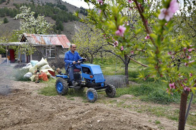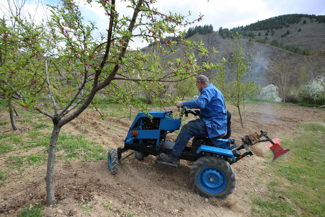 Öner, meyve bahçesini, arazinin engebeli olmasından dolayı bugüne kadar çapa makinesiyle ya da kürekle sürdüğünü söyledi.