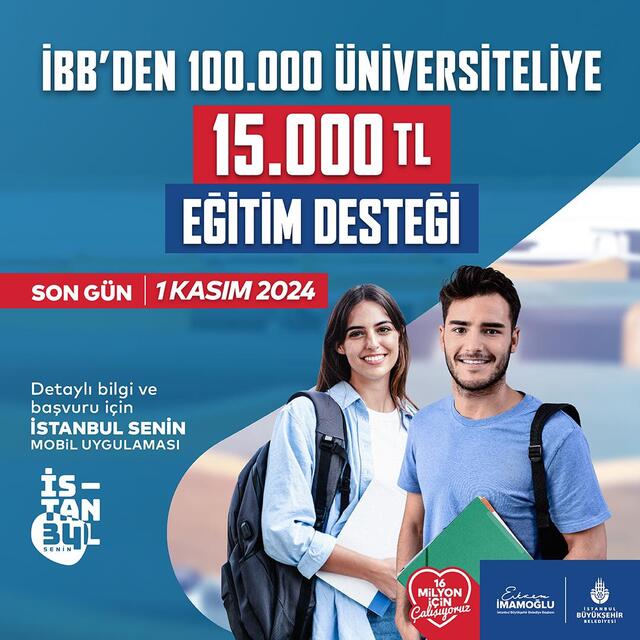 İstanbul Büyükşehir Belediyesi 2024-2025 eğitim öğretim döneminde 100 bin öğrenciye yıllık 15.000 TL eğitim yardımı yapacak.