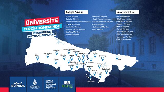İBB YKS ÜNİVERSİTE TERCİH MERKEZLERİNİN YER ALDIĞI MEYDANLAR