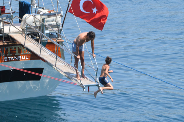 Kiraladıkları tekne ile Cennet Koyu'na gelen Kutluay ailesi, gün boyu denizin tadını çıkardı.