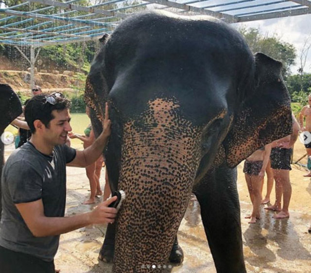 Mert Fırat paylaşımının altına;"Bugün fil yetimhanesine gittik. Kurtarılmış filleri, yıkadık, temizledik, besledik, sarılıp öpüştük vedalaştık" notunu düştü.