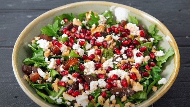 Yapılışı: Rokaları güzelce yıkayın ve doğrayın. Soğan ve domatesleri yatay şekilde ince olacak şekilde dilimleyin. Ayrı bir kâsede zeytinyağı, limon suyu, nar ekşisi, beyaz biberi ve tuzu karıştırın. Farklı bir salata kâsesine doğranan roka, soğan, domates ve narı ilave ederek karıştırın.Sosu da üzerine ilave ederek salatayı servise çıkarabilirsiniz. Dilerseniz üzerini cevizle süsleyebilirsiniz.