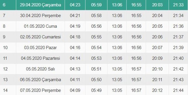Haberler Gündem İnanç İftar saatleri 2020! Diyanet imsakiyesi 29 Nisan iftara ne kadar kaldı? Akşam ezanı ne zaman okunacak?