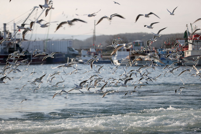 İğneada'da martılar balıkçı teknelerinin peşini bırakmıyor
