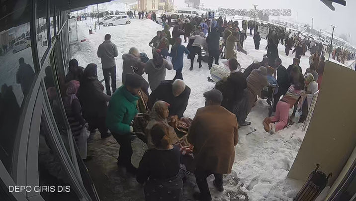 Havanın soğuk olması nedeni ile deprem sonrası battaniye almak için içeri girenlerin artçı sarsıntıya yakalandığı anlar da yine güvenlik kamerasına yansıdı.