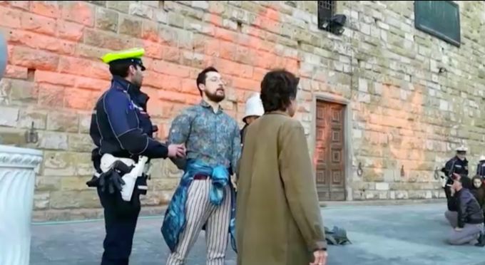 İtalya'nın Floransa kentinde belediye başkanlığı olarak kullanılan tarihi Vecchio Sarayı'na ikilim aktivistlerinin boyalı saldırısına Floransa Belediye Başkanı Dario Nardella bizzat müdahale etti.