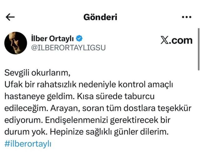 İkinci bir açıklama da Ortaylı'nın kendisinden geldi. Ortaylı X ve Instagram hesaplarından sevenlerine şu açıklamayı yaptı;