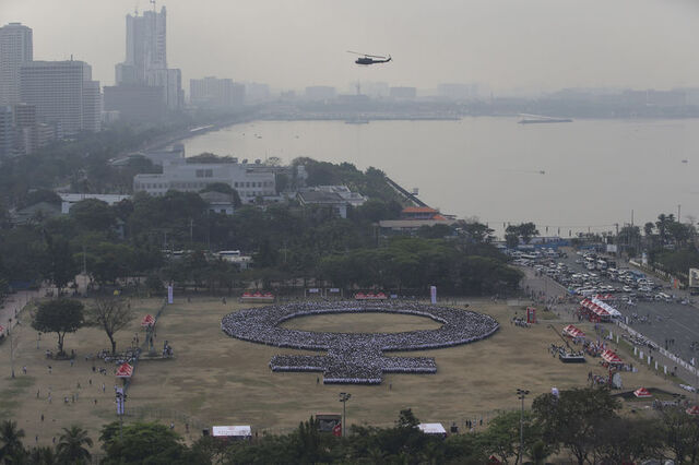 Fotoğrafta 8 Mart 2014'te Filipinler'de yaklaşık 10 bin kişinin kadın sembolü oluşturduğu görülüyor. Kaynak: AP