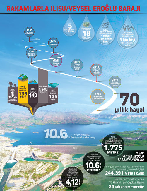 Mardin, Diyarbakır, Siirt, Batman, Şırnak illerini kapsayan Ilısu Barajı; yeni adıyla Veysel Eroğlu Barajı, 19 Mayıs tarihinde faaliyete geçti. Cumhurbaşkanı Recep Tayyip Erdoğan'ın katıldığı törende barajın birinci tribünü elektrik üretimine başladı. Projenin konsorsiyum ortaklarından Cengiz İnşaat A.Ş. Su Yapıları Direktörü İbrahim Yavrucu anlattı. Cengiz İnşaat'tan yapılan yazılı açıklamaya göre Yavrucu, "Sürecin içinde olan bir kişi olarak şunu rahatlıkla ifade edebilirim ki bu proje, sıradan bir baraj inşaatı değildir. İşçisinden mühendisine, konsorsiyum ortaklarından devletin en tepesindeki isme kadar herkesin elini taşın altına koyduğu bir başarı hikayesidir" dedi.