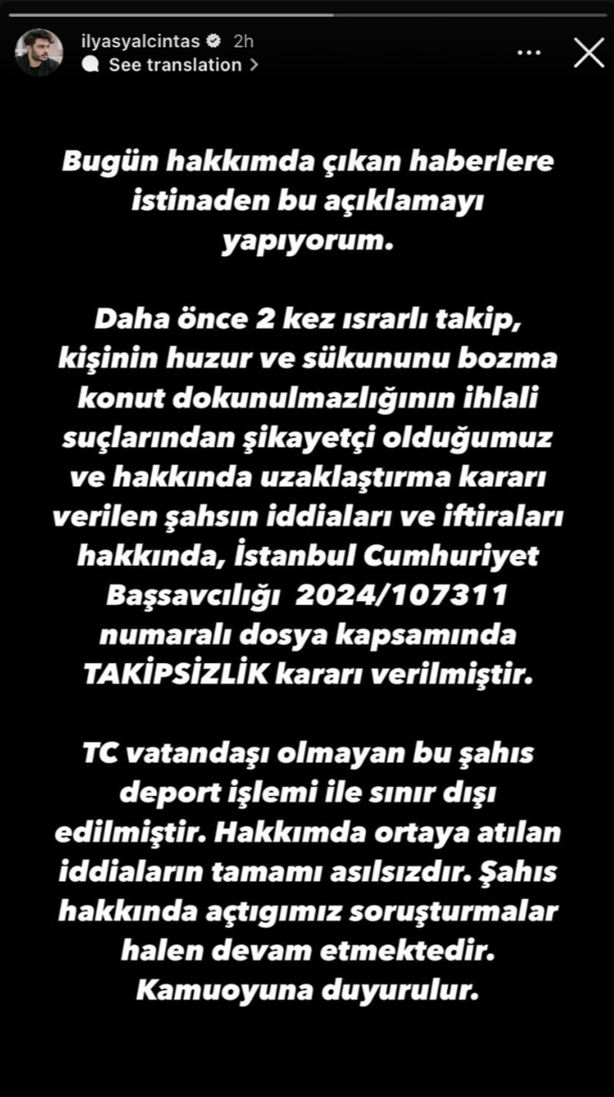 İlyas Yalçıntaş, konuyla ilgili bir açıklamada bulundu;