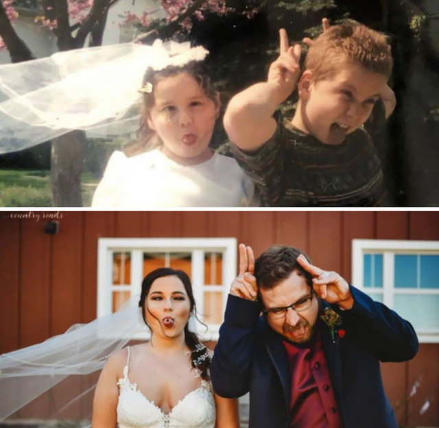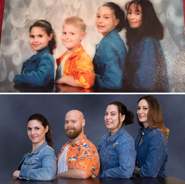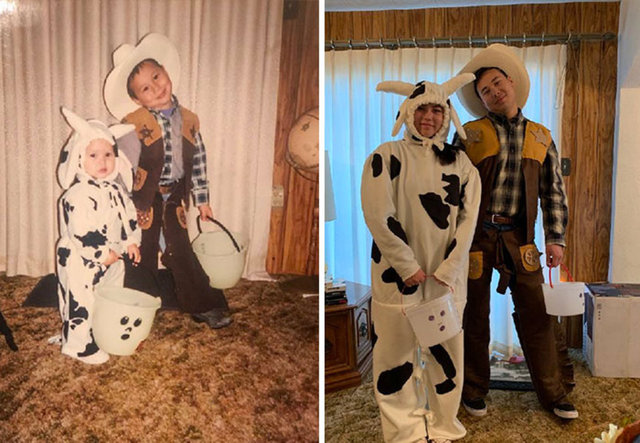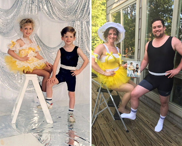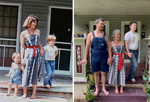 Aile büyüklerinin eski karelerini taklit eden ya da çocukluk anılarını yeniden canlandıran kişilerin paylaşımları sosyal medyada fenomen olmaya devam ediyor! İşte eski fotoğrafları yeniden canlandıran sosyal medya kullanıcılarının keyifli paylaşımları...