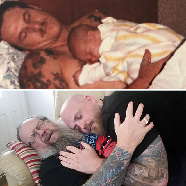 24 yıl arayla çekilen baba-oğul fotoğrafı.