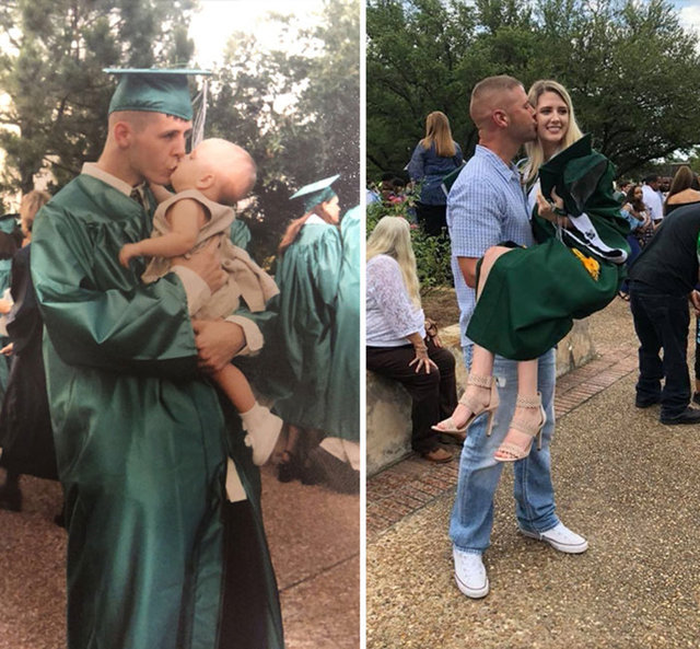 Baba ve kızın 13 yıllık arayla çekilen iki fotoğrafı!