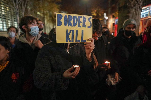 Manş Denizi'nde 24 Kasım'da düzensiz göçmenleri taşıyan teknenin batması sonucu en az 27 göçmenin hayatını kaybetmesinin ardından İngiltere'nin başkent Londra'da protesto düzenlendi.