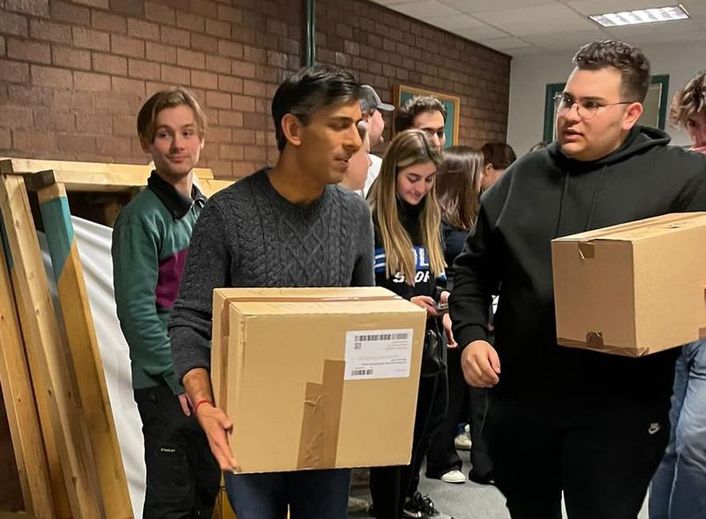 İngiltere Başbakanı Rishi Sunak, University College London (UCL) Türk Öğrenci Birliğinin, Kahramanmaraş merkezli depremlerden etkilenenlere yönelik yardım kampanyasına katılarak öğrencilerin yardım malzemesini paketlemesine yardım etti.