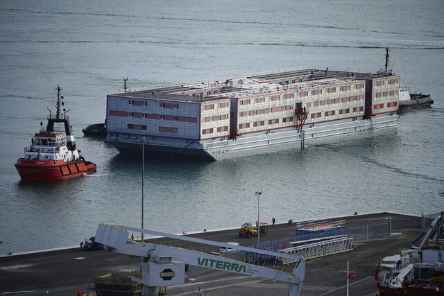 En az 18 ay boyunca 500 sığınmacıyı barındıracak 222 odalı gemi, geçen hafta Dorset'in güney kıyısındaki Portland Limanı'na ulaşmıştı. Gemi, bölge halkı ve insan hakları gruplarınca protestolarla karşılanmıştı.