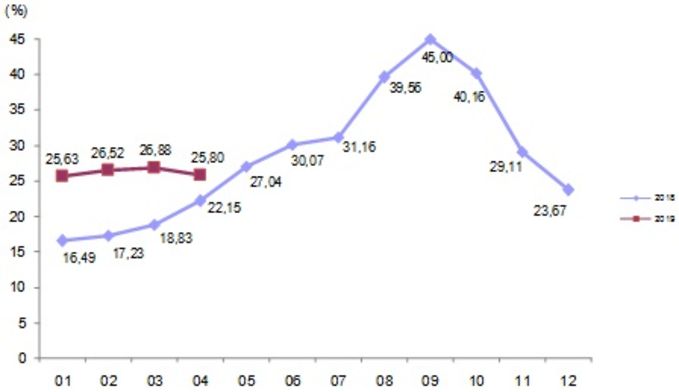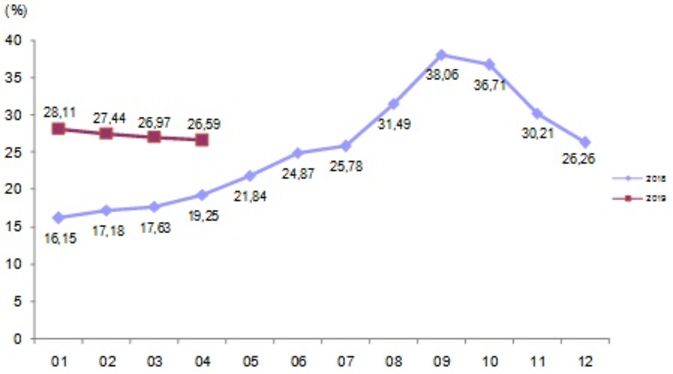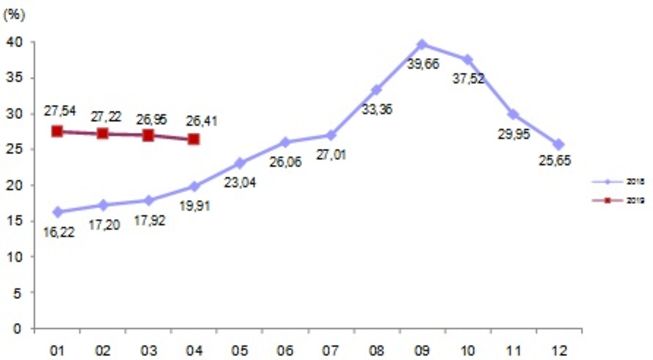Bina inşaatı maliyet endeksi yıllık değişim oranı, Nisan 2019