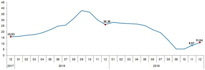 İnşaat maliyet endeksi yıllık değişim oranı (%), Aralık 2019