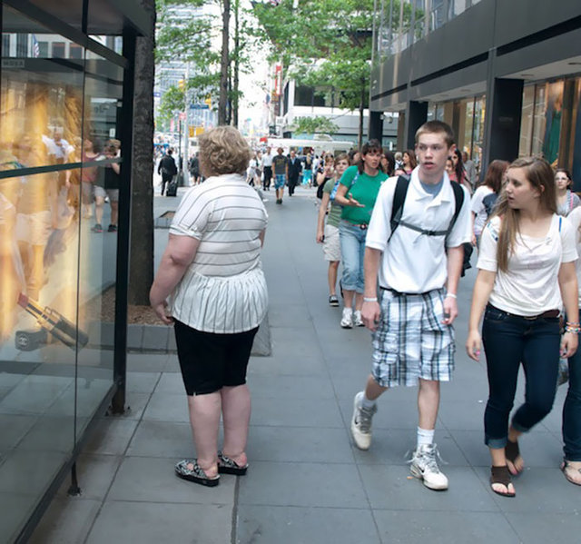 Fotoğrafçı Haley Morris-Cafiero, insanların sokaktaki kilolu kişilere nasıl baktığını göstermek için fotoğraflar çekiyor. Haley, bu projeyi sosyal deney olarak gördüğü için yaptığını belirtiyor.
