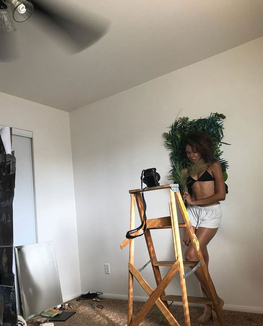 Stüdyo kirası ödemek yerine evinde hazırladığı sette fotoğraflar çeken Douglas, internette gördüğü paylaşımlardan ilham alıyor.
