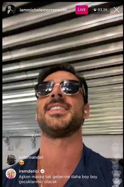 Şarkıcı İrem Derici, İtalyan oyuncu Michele Morrone'nin canlı yayınına katıldı. Derici, Morrone'ye "Aşkım maske tak geberme! Daha boy boy çocuklarımız olacak" yorumunu yaptı