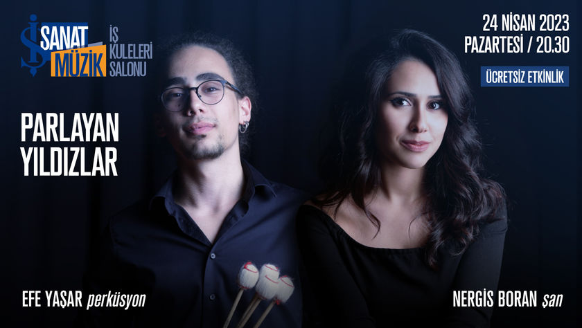 İş Sanat’ın genç müzisyenlere sahne deneyimi kazandırmak ve sanat hayatına attıkları ilk adımlarında destek olmak amacıyla düzenlediği Parlayan Yıldızlar konserleri İş Kuleleri Salonu’nda devam ediyor. 24 Nisan Pazartesi, saat 20.30’da gerçekleşecek konserde Nergis Boran Öztaş (şan) ve Efe Yaşar (perküsyon), 15 Mayıs Pazartesi, saat 20.30’da ise Can Saraç (piyano), Alaz İkiz (piyano) sahne alacak.