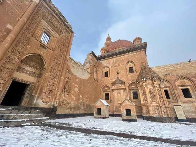 AA'nın haberine göre Doğu Anadolu Bölgesi'nin en önemli tarihi ve turizm mekanlarından Ağrı'nın Doğubayazıt ilçesindeki tarihi İshak Paşa Sarayı, mimarisi, tarihi ve görkemli yapısıyla Avrupa ülkeleri başta olmak üzere dünyanın birçok ülkesinden her yıl turistleri ağırlıyor.