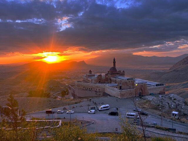 Türkiye'nin çatısı konumundaki, 5 bin 137 metre yüksekliğindeki Ağrı Dağı'nın görkemli manzarasına nazır İshak Paşa Sarayı, her yıl binlerce yerli ve yabancı turisti ağırlıyor. Ağrı'nın Doğubayazıt ilçesindeki tarihi yapı, yalnızca mimarisiyle değil, sunduğu eşsiz gün batımı manzarasıyla da dikkat çekiyor