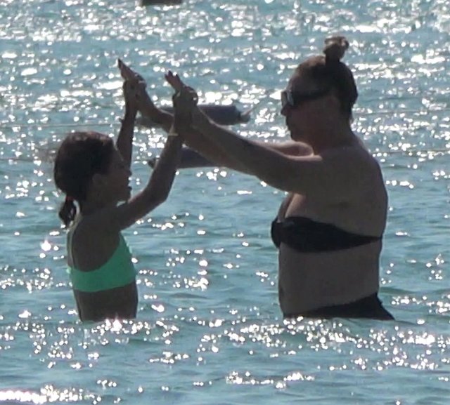 Mia'ya sarılarak suda yürüyen Işın Karaca'nın kızıyla birlikte eğlenceli anları objektiflere yansıdı.