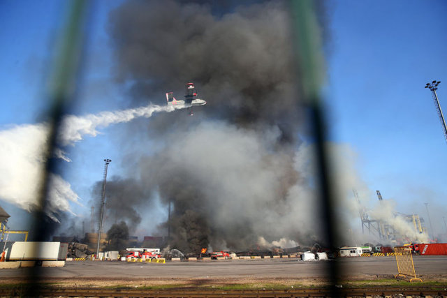 Orman Genel Müdürlüğü'nden ve Rusya'dan sevk edilen iki yangın söndürme uçağı havadan, itfaiye ve arazözler de karadan çalışma yürüttü. Liman ekipleri, hasar gören çok sayıda konteyneri iş makineleriyle yangın sahasından çıkardı.