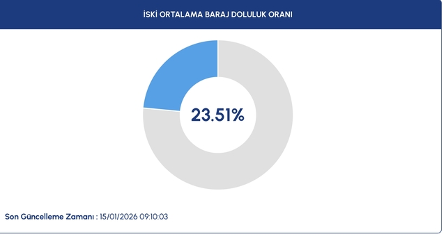 İSKİ 15 Ocak 2026 baraj doluluk oranları belli oldu. Bugün itibarıyla barajlardai seviye yüzde 23.51 olarak kaydedildi.