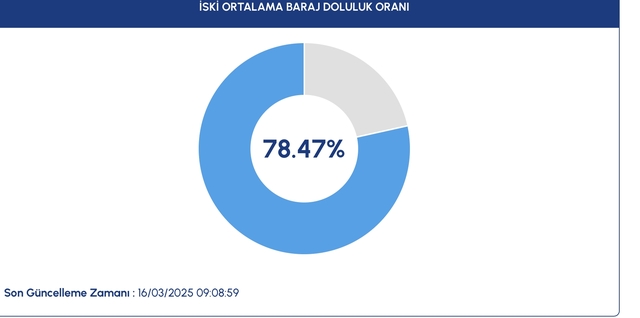 İstanbul Su ve Kanalizasyon İdaresi (İSKİ) verilerine göre baraj doluluk oranı yüzde 78,47 oldu.