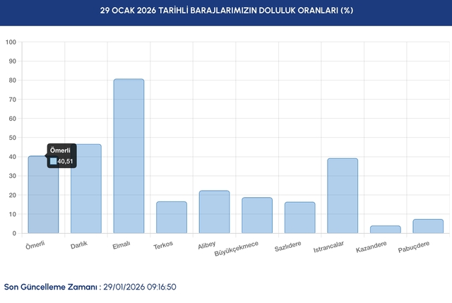 İstanbul Su ve Kanalizasyon İdaresi (İSKİ), 29 Ocak 2026 Perşembe günü itibarıyla barajlardaki güncel doluluk oranlarını paylaştı. İşte baraj doluluk oranında son durum