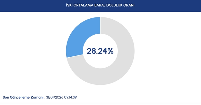 İstanbul baraj doluluk oranı 31 Ocak bugün yüzde 28,24 olarak kaydedildi.
