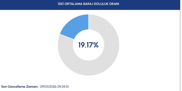 9 Ocak 2026 Cuma günü İSKİ'nin resmi internet sitesinden alınan bilgiye göre, İstanbul'da barajların genel doluluk oranı 9 Ocak günü yüzde 19.17 olarak ölçüldü.