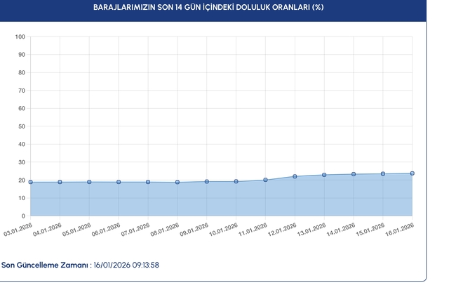 İSKİ 16 Ocak 2026 baraj doluluk oranları belli oldu. Bugün itibarıyla barajlardaki seviye yüzde 23.75 olarak kaydedildi.