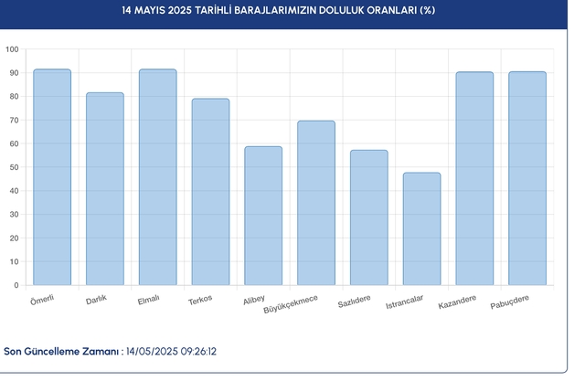 14 MAYIS 2025 İSTANBUL BARAJ DOLULUK ORANLARI