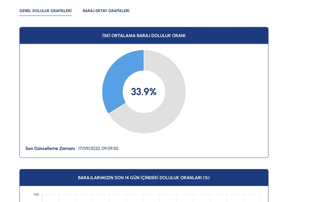 İSKİ güncel baraj doluluk oranını güncel olarak duyuruyor. İstanbul baraj doluluk seviyeleri geride bıraktığımız hafta yüzde 40 seviyesinin altındaydı. Yeni haftaya girmemizle birlikte güncel baraj doluluk oranı merak ediliyor. Peki, 17 Eylül 2025 İSKİ İstanbul güncel baraj doluluk oranı yüzde kaç oldu?