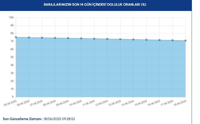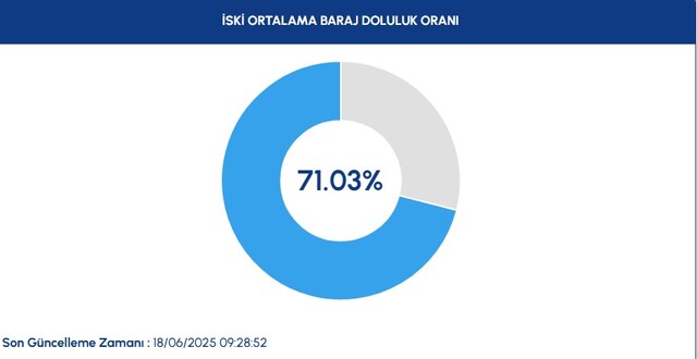 18 Haziran Çarşamba günü, İstanbul'a su sağlayan 10 barajın toplam doluluk oranı yüzde 71,03 olarak ölçüldü.