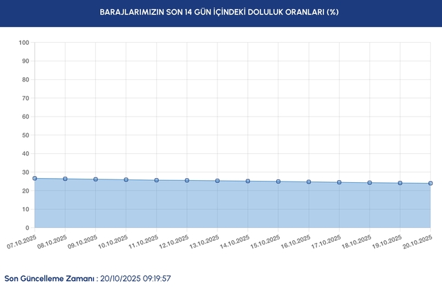 İstanbul'da yağışların yetersiz kalmasıyla barajlardaki su seviyesi hızla düşüyor. İSKİ'nin 20 Ekim tarihli güncel verilerine göre İstanbul'da doluluk oranı yüzde 24 seviyesinin altına geriledi. İşte, güncel baraj doluluk oranı