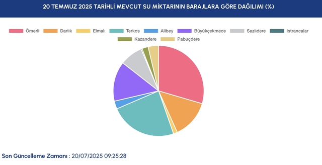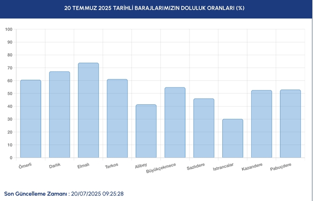 İSKİ 20 TEMMUZ 2025 İSTANBUL BARAJ DOLULUK ORANLARI