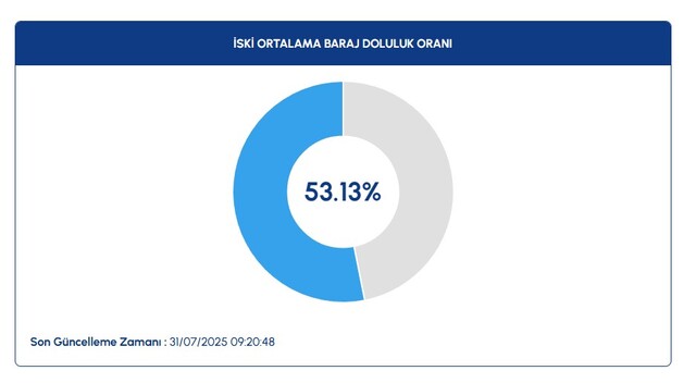 İSKİ tarafından açıklanan son veriye göre İstanbul barajlarında genel doluluk oranı yüzde 53.13 olarak duyuruldu.