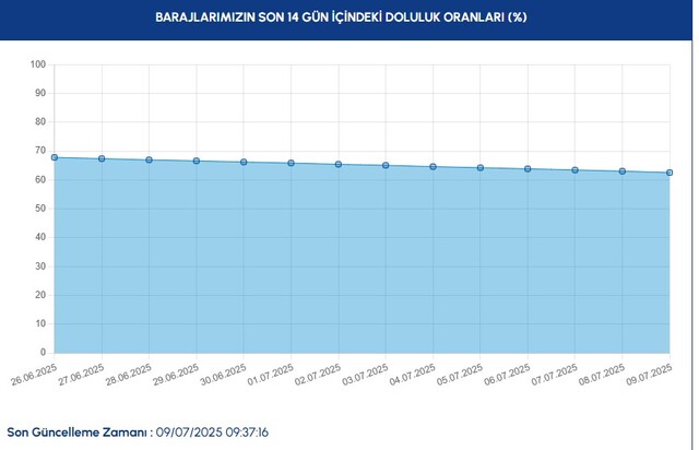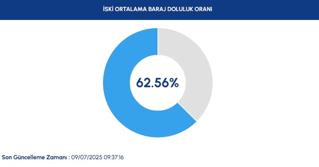İSKİ'nin paylaştığı İstanbul barajları doluluk oranı yüzde 62,56 oldu.