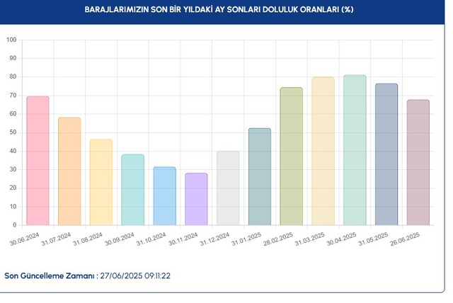 İSTANBUL BARAJ DOLULUK ORANLARI 27 HAZİRAN 2025