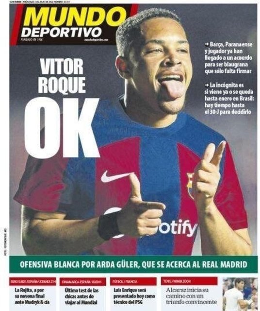 "Florentino Perez, öğleden sonra Türk oyuncu için Barça'nın teklifinden çok daha yüksek bir teklif sundu ve transferde öne geçti. Arda'nın Barcelona'ya gitmesini engellemek için çıldıran Real Madrid, bugün Arda ve Fenerbahçe'nin 'evet' demesini umuyor."