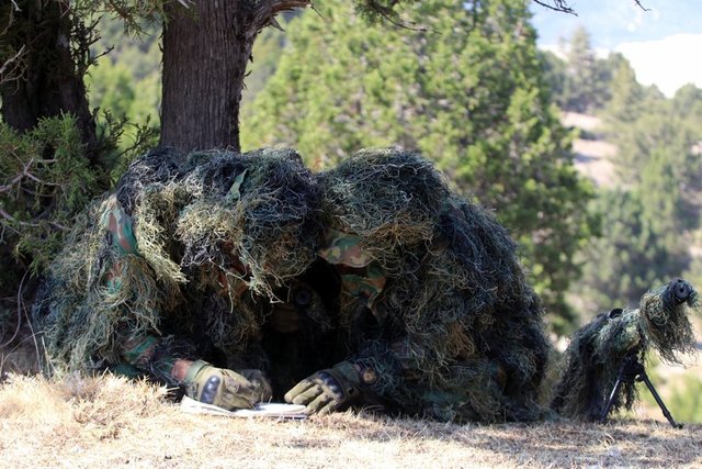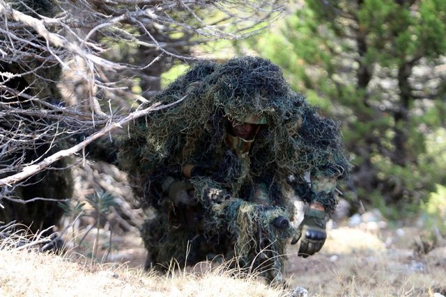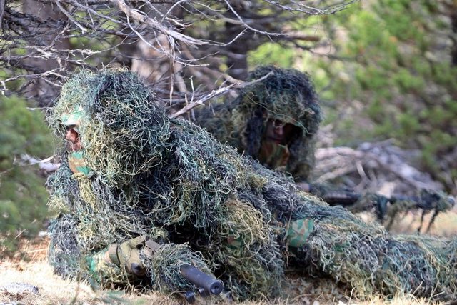 Buradaki eğitimlerinin ardından yine sızma yeteneklerini geliştirmek için öğretmenleri eşliğinde dağlık arazideki sızma parkuruna geçen komandolar, bulundukları doğa koşullarına uygun şekilde kamufle oluyor, kendilerine önceden bildirilen koordinatlara dağlık arazide ilerliyor. Yeşillik alandaki doğayla bütünleşen, adeta gözün göremeyeceği kılığa bürünen komandolar, belirtilen koordinatlara ulaştığında ise uzun menzilli silahlarıyla siper alıp, düşmanı hedef menziline alıyor.