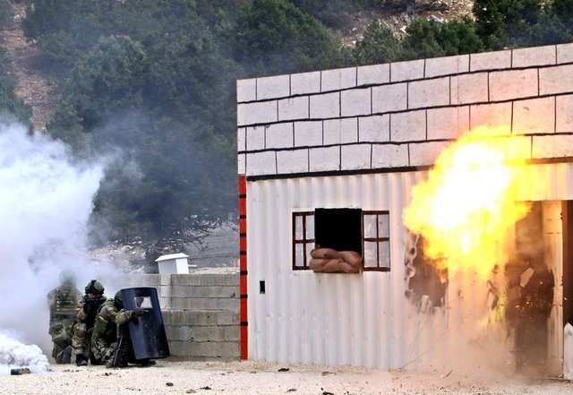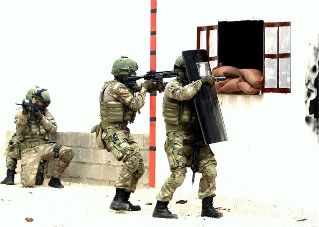 Komandolar, meskun mahallelerde en iyi şekilde muhabere ederek, düşmanlarını en kısa sürede etkisiz hale getirebilmek için öğretmenleri gözetim ve kontrolünde de eğitim alıyor. Bu eğitimlerde, ani baskın yapan ekipler önce mahalledeki belirtilen alanları adeta sise boğuyor. Ardından kontrollü şekilde ilerleyen komandolar, evlere girerek terörist kılığındaki düşmanları etkisiz hale getiriyor. Kalkan eşliğinde mahalledeki diğer evleri kontrol eden komandolar, kendilerine ateş açılması durumunda güvenli bölgeye geçerek karşılık veriyor.